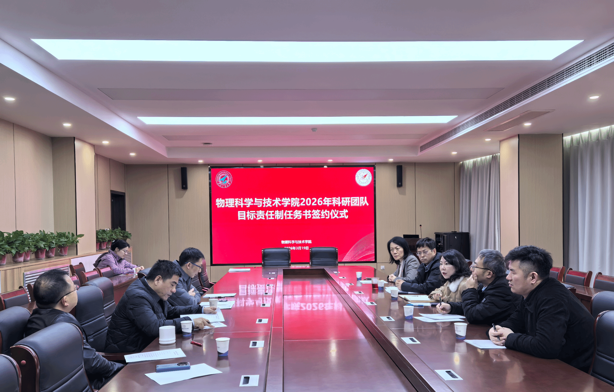 为高质量推进有组织科研,进一步激发科技创新活力,促进学院科研工作的高质量发展。3月19日上午,物理科学与技术学院在454会议室举行2026年度科研团队目标责任制任务书签订仪式。学院院长翟薇、党委书记晁小荣、科研副院长闫娜,各科研团队负责人及骨干代表等参会。会议由科研副院长闫娜主持。