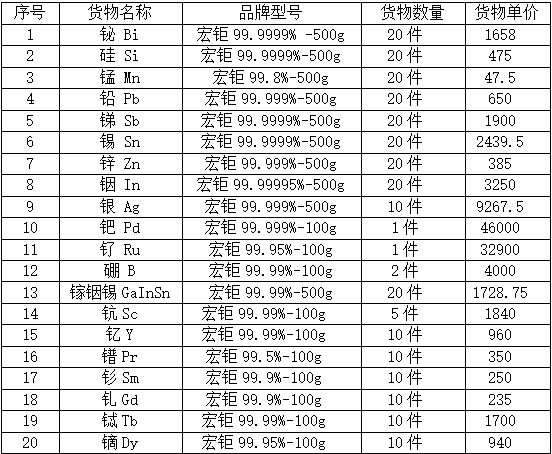 铋、硅等高纯实验材料