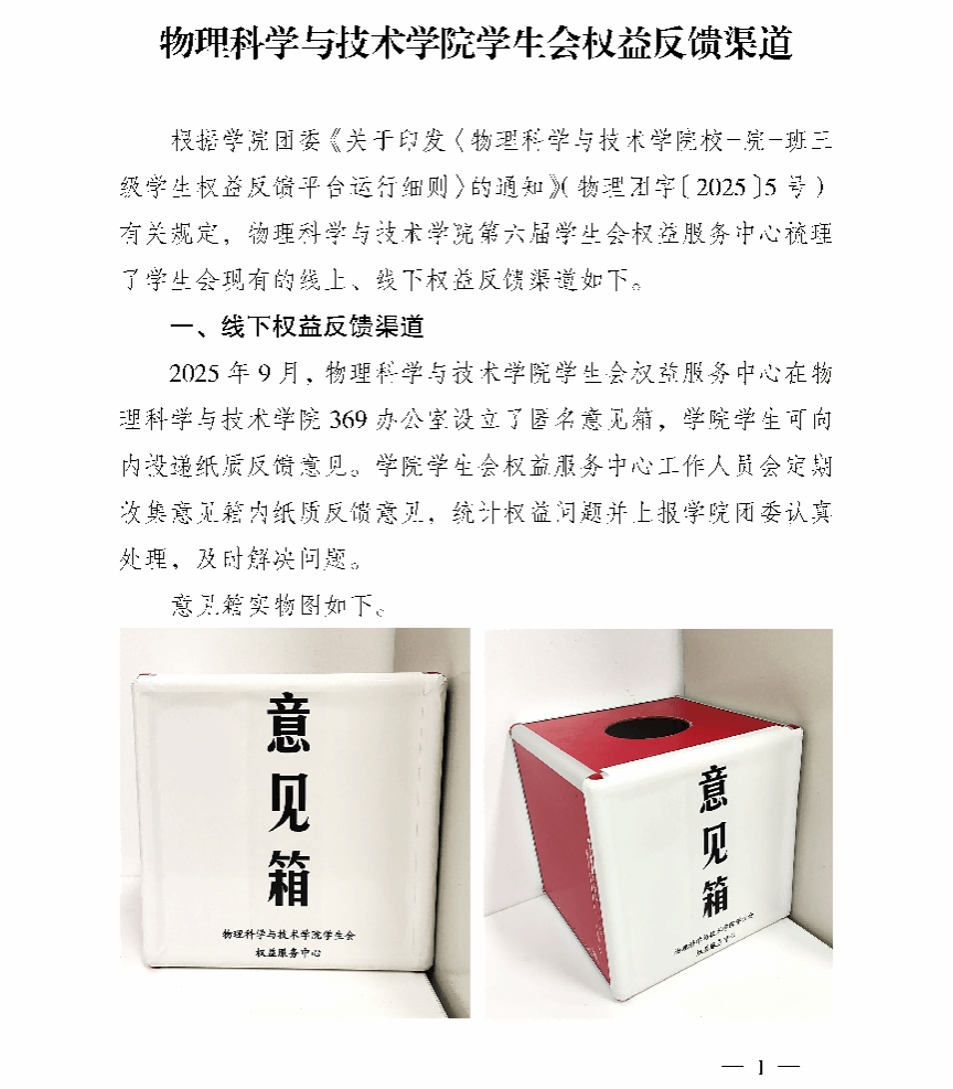 权益问题,请“投递”至此——物理科学与技术学院专属权益反馈通道宣传