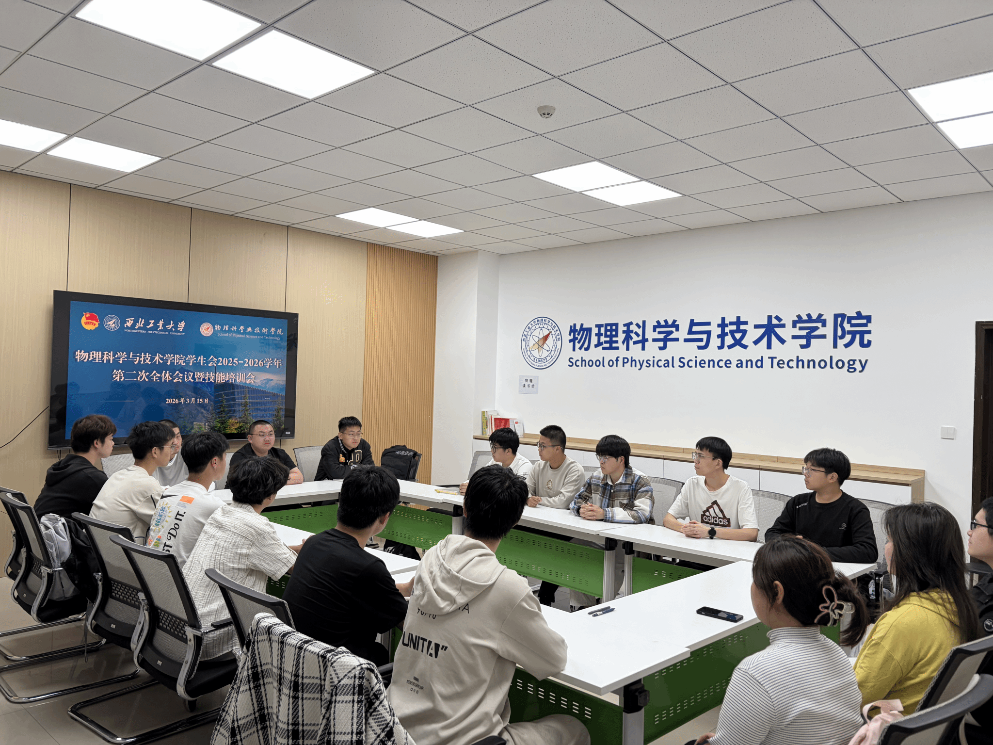 为进一步统筹推进本学期重点工作,明确下一阶段任务安排,加强学生会组织建设,落实工作人员培训制度,物理科学与技术学院学生会于2026年3月15日在学院楼385会议室召开2025-2026学年第二次全体会议暨技能培训会,学院学生会全体成员出席本次会议。