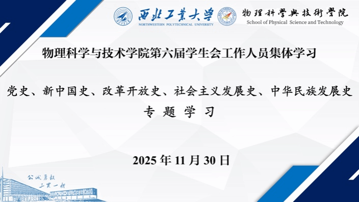 为加强思想政治引领,抓实学生会队伍建设,2025年11月30日,物理科学与技术学院学生会在院学生会主席团成员王宣焱的组织下,深入开展“学党史、新中国史、改革开放史、社会主义发展史、中华民族发展史”主题学习活动。